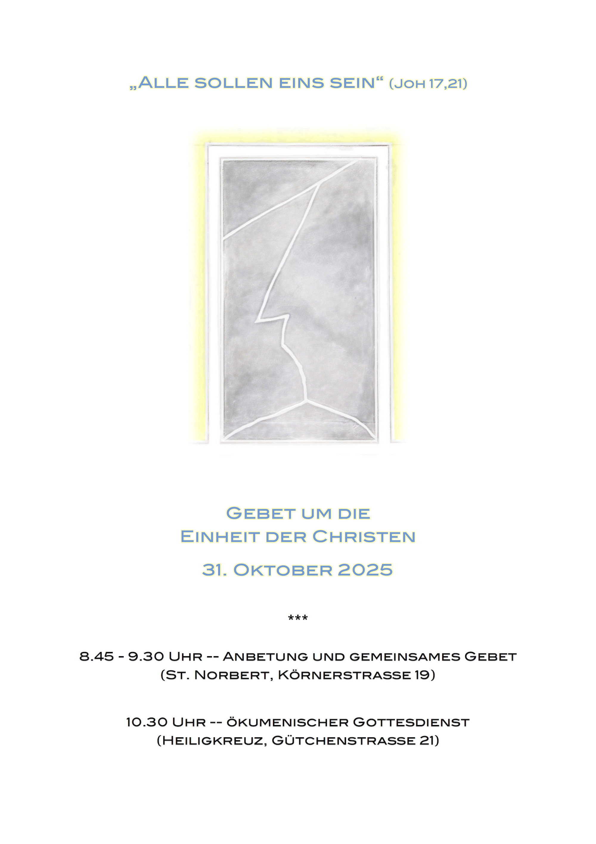Im Angesicht GOTTES wollen wir Fürbitte halten zum Thema „Einheit der Christen“.